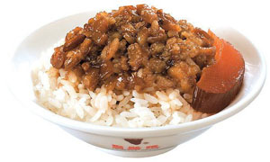 bah-pn̄g (魯肉飯, lǔròu fàn) - Minced, cubed, or ground fatty pork, stewed in soy sauce and spices, then served on rice.